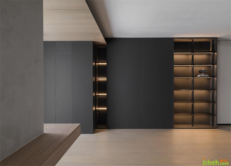 頂天立地的儲物柜,開架與門板的結合,集美觀與收納為一體,理性框架與人文藝術感性碰撞,給空間帶來更多趣味。家裝設計通過家具的巧妙搭配,整合整個空間,創(chuàng)造出滿足收納、辦公、休閑之需的多功能體塊,不定義空間的屬性,給予空間更多的使用方式和涵義。