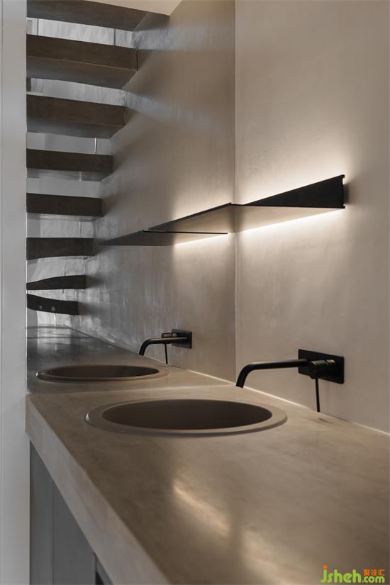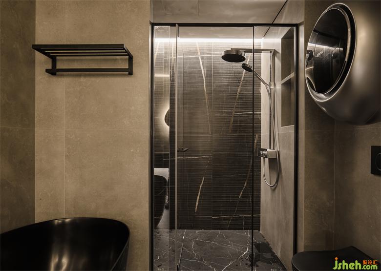 主衛(wèi)的朦朧感延伸到公衛(wèi),微黃的燈光,黑色系衛(wèi)浴,都讓腳步慢了下來。家裝設計深槽的設計,避免水花飛濺,更易清理。掛壁式洗衣機也更便于清洗一些小衣物。主衛(wèi)設施一應俱全,讓呆在衛(wèi)生間的時光仿佛都充滿了儀式感。