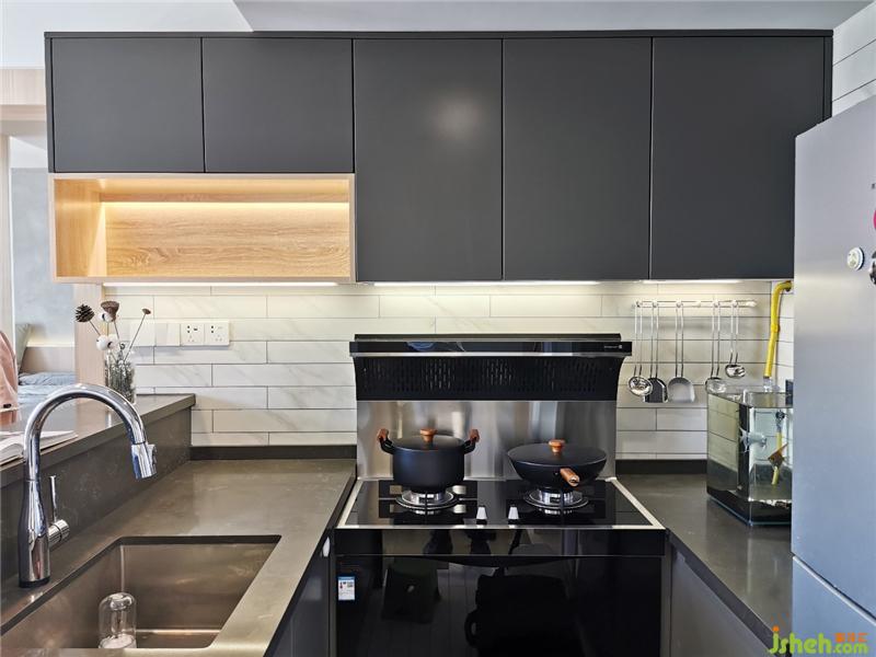 ▲集成灶可以提高排油煙的效率;櫥柜吊柜手掃感應(yīng)燈,方便開(kāi)關(guān),同時(shí)提升臺(tái)面照度。室內(nèi)設(shè)計(jì)師