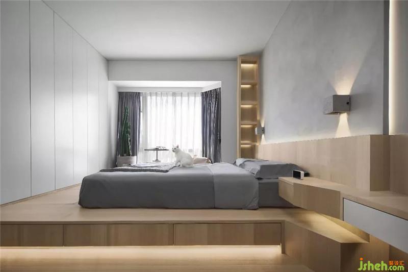 ▲超級(jí)溫馨的臺(tái)階式榻榻米臥室,兼顧美觀和收納,增加線條式的燈帶,通過(guò)燈光營(yíng)造氛圍,仙氣十足!