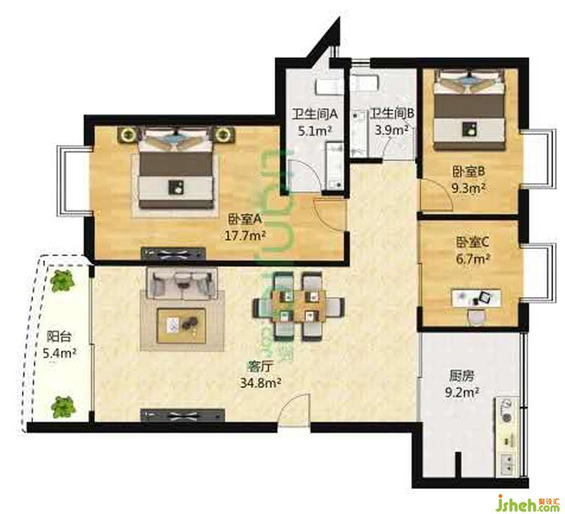 戶型格局:三室兩廳