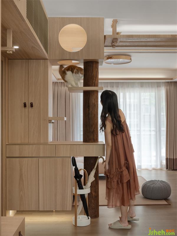 當(dāng)下養(yǎng)寵物的年輕人,已經(jīng)脫離了單純買貓別墅家具,而是在裝修的時(shí)候就從貓的生活習(xí)性去考慮「家」的動(dòng)線規(guī)劃,業(yè)主希望貓咪在家不僅是寵物,同時(shí)還是平等的空間使用者,讓居所真正實(shí)現(xiàn)「人貓共樂(lè)」。因此,該案我們嘗試用貓的視角去審視,從空間功能的本質(zhì)出發(fā),去探討如何從尺度、光線、生活習(xí)慣去研究。