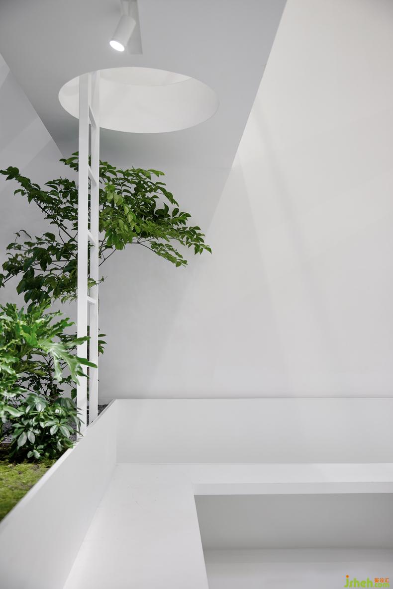 通往二層的樓梯輕薄而有力,二層辦公區(qū)與一層有“天井”相連,辦公室設(shè)計(jì)通過這部分灰空間感受原始的舊空間生長的植物貫穿上下,空氣在其縫隙中自由流通,空間模糊了室內(nèi)外,空間間隙處的景觀空間成為了原始空間的“意義上的外部”。