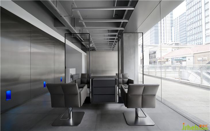 室內(nèi)燈光排布極其講究,結(jié)合方位、模擬自然光保證了無影的工作環(huán)境和發(fā)色真實(shí)度,為客戶及美發(fā)師帶來一個完整、平衡的解決方案。平地而起的鏡面和鋼板將區(qū)域切割成多個隔而不斷的模塊,同時規(guī)避鏡像無限反射原理而造成人的視覺判斷誤差。