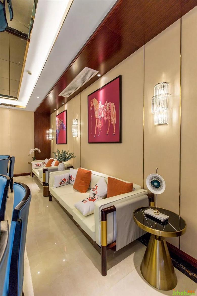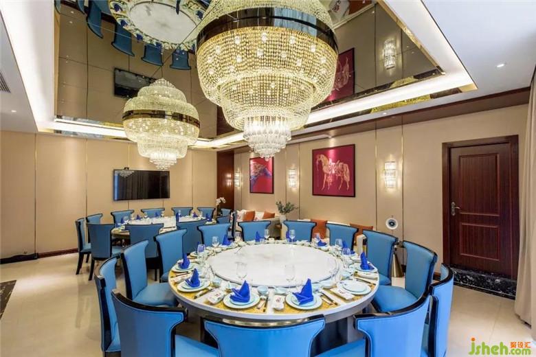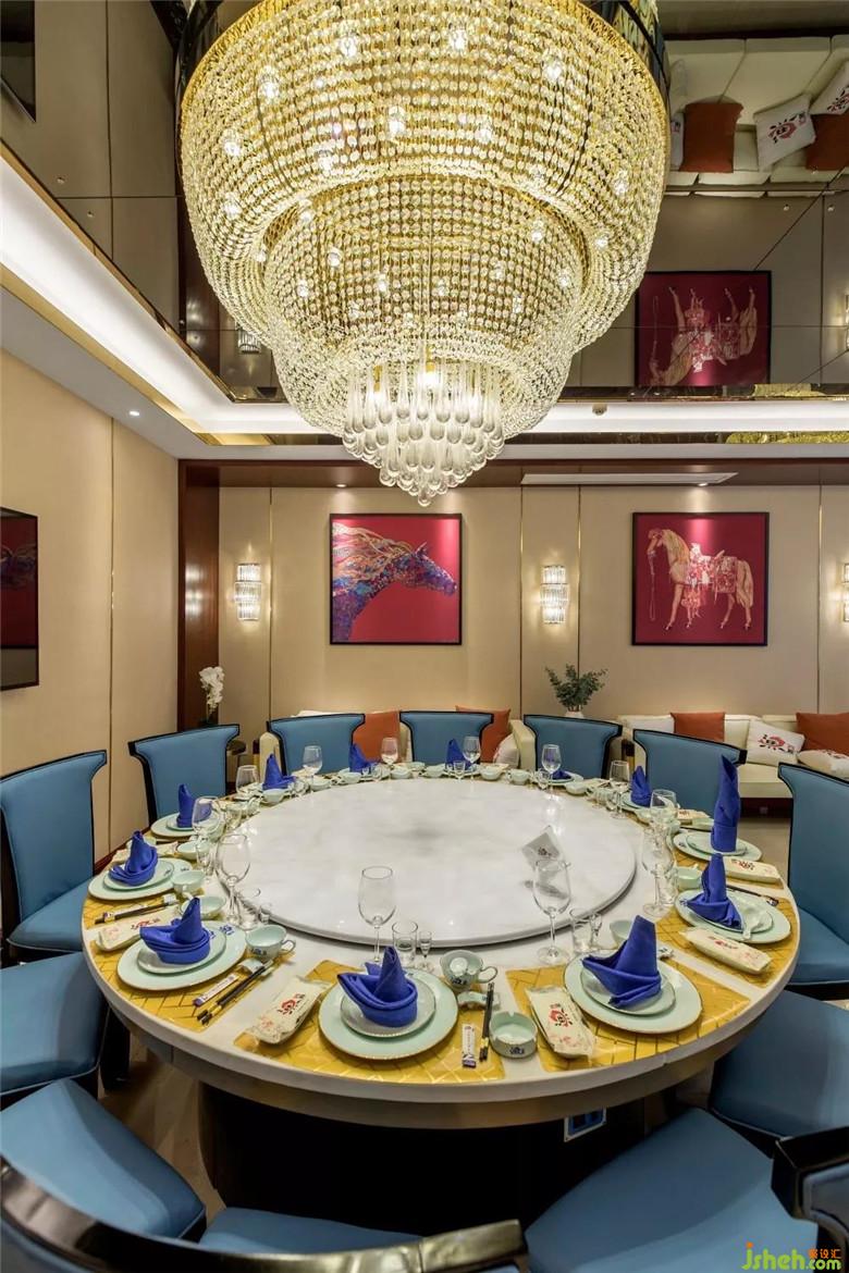 在包間的空間打造上,以沉穩(wěn)的駝色為主色調(diào),搭配海洋藍(lán)的餐椅,大面積襯托整個(gè)空間的質(zhì)樸和純粹。再以些許溫暖的紅色提亮空間的視覺,恰到好處的美感渲染開來(lái)。