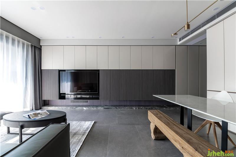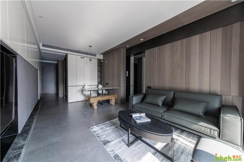 材質(zhì):木飾面、超薄筒燈、大理石餐桌、烤漆門