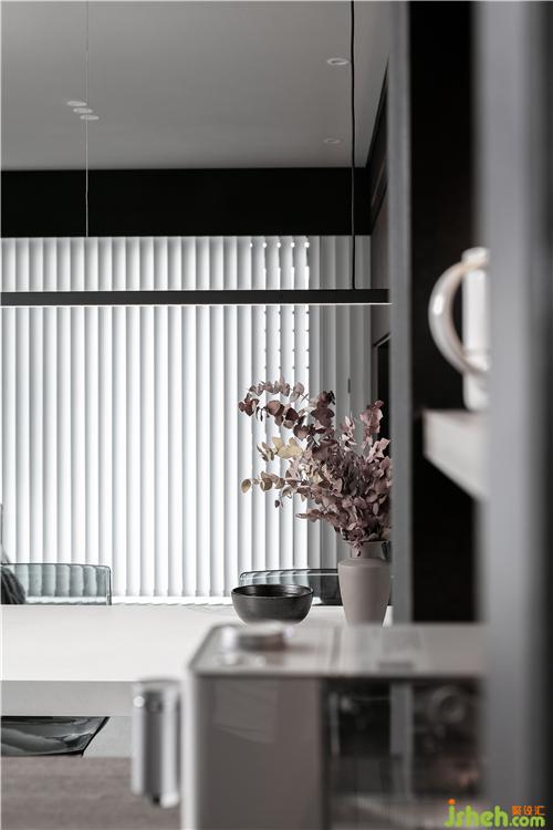 由餐廳望向客廳,依舊通透,沒(méi)有冗雜的裝飾,尊崇少即是多的原則。