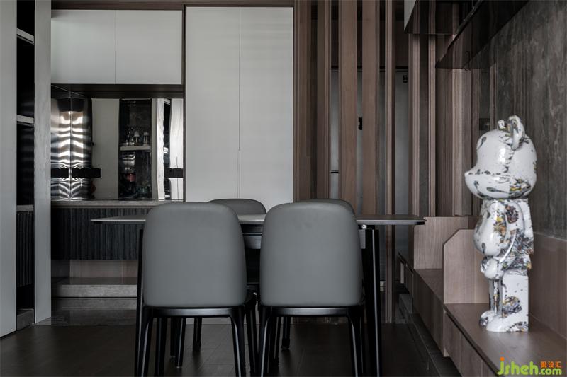 美感與實(shí)用完美結(jié)合;巖板、木質(zhì)、黑鋼的材質(zhì)相互中和