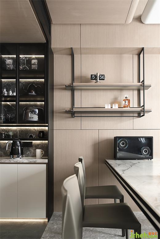 客廳與廚房動(dòng)線流暢,藝術(shù)氛圍與情感交流在開放空間中互動(dòng),美景與美食相得益彰,來(lái)承擔(dān)起真實(shí)親密的三餐四季。當(dāng)空間中的一切都妥帖有序時(shí),深圳家裝設(shè)計(jì)才能帶給人們安寧的感覺,而安居在家中,人們擁抱的就是一個(gè)有溫度的世界。