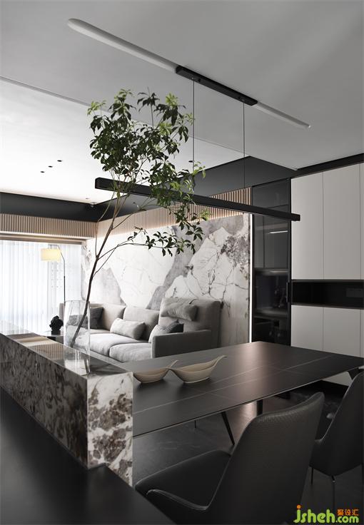 客廳與廚房沒有間隔,餐廳區(qū)的灰白色調(diào),電視背景深淺錯(cuò)落的烤漆柜門增加藝術(shù)感,自然的木飾面色調(diào)穿插金屬元素的植入畫龍點(diǎn)睛,木子仁設(shè)計(jì)深淺的對(duì)比點(diǎn)到為止,輪廓線條簡(jiǎn)潔明快,彼此形象獨(dú)立卻又功能互通,對(duì)于在節(jié)奏快速的深圳居者,外部環(huán)境和內(nèi)部環(huán)境的分離,才能帶來安定的感覺和有溫度的世界。