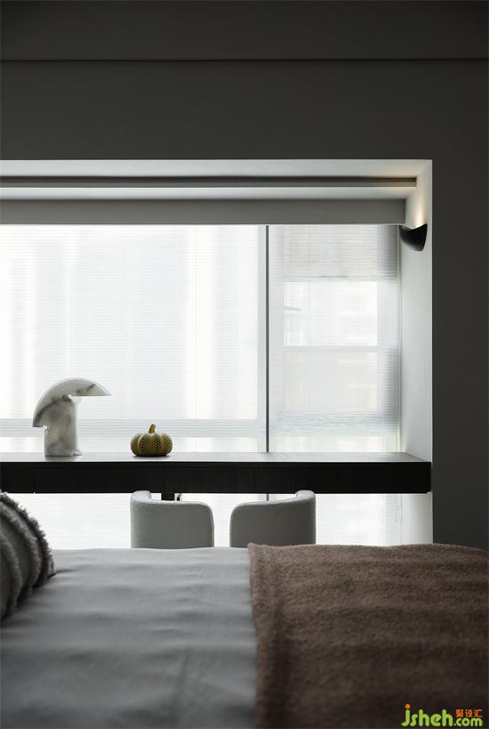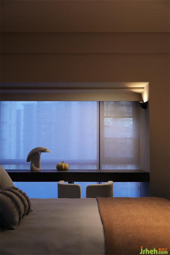 次臥的設(shè)計,家裝設(shè)計手法表現(xiàn)了簡潔和留白的意境,同時通過天花斜頂?shù)脑O(shè)計完美包攬了天花反梁對風(fēng)水的破壞,形成了舒適的美學(xué)體驗(yàn)和濃重的藝術(shù)氛圍,木飾面的護(hù)墻板與寫字臺連成一體,完成畫面完整并功能保持和諧共處,空間功能動線合理交織又各自獨(dú)立,自然的光與影對材質(zhì)肌理的表達(dá)呈現(xiàn)出淋漓盡致的觀賞感。