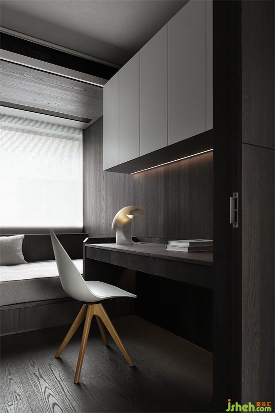 兒童房有限的空間卻也同樣功能一應(yīng)俱全。大大的寫字臺為兒童描繪的未來藍(lán)圖。家裝設(shè)計窗戶自然的光線也灑在木飾面的臺面上,簡單不失大氣的設(shè)計符合人體工程學(xué)。木飾面的榻榻米與護墻板以及桌面材質(zhì)一致,形成整體感,轉(zhuǎn)角磨圓的設(shè)計,木飾面安定的質(zhì)感,給兒童房加了安全的濾鏡。