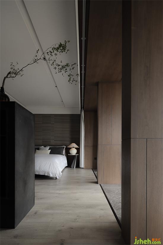 主臥滿足衣帽間、書房、睡眠區(qū)、衛(wèi)生間一體的套房需求,在尺度中把握功能與功能之間的平衡。然后封掉主臥與陽臺的出入動線,改從書房進(jìn)出,與公共區(qū)形成一條有趣的洄游動線。同時也加強(qiáng)主臥睡眠區(qū)的隱私性,能在工作后可以直徑走入陽臺散步,放松緊繃的疲累精神。