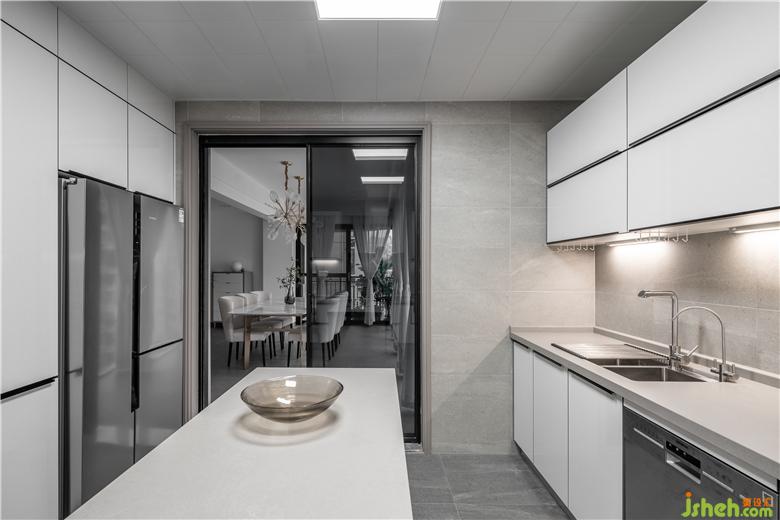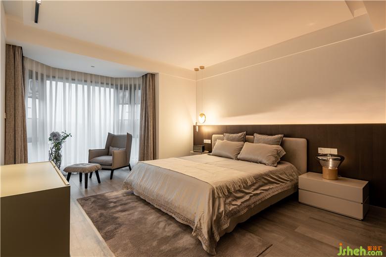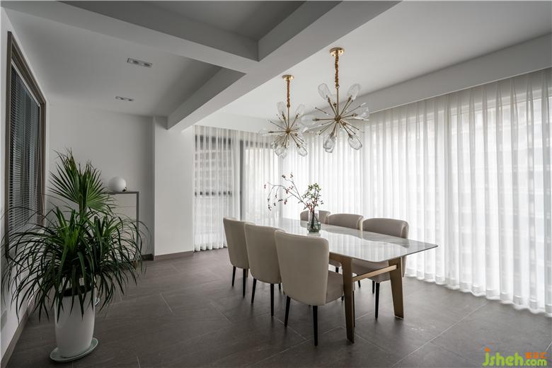 沙發(fā)沒有傳統(tǒng)式靠墻,而是松散地擺放在客廳中央,使得空間在開放的同時又不會顯得過于空曠。生活陽臺被一縷白紗籠罩,形成一種純粹自然的通透視線,晴天時拉開窗簾,則可以享受滿滿的陽光浴。足夠大空間容量,無論是一家人還是要請朋友,都可以成為撐起一場精彩的party。