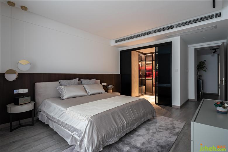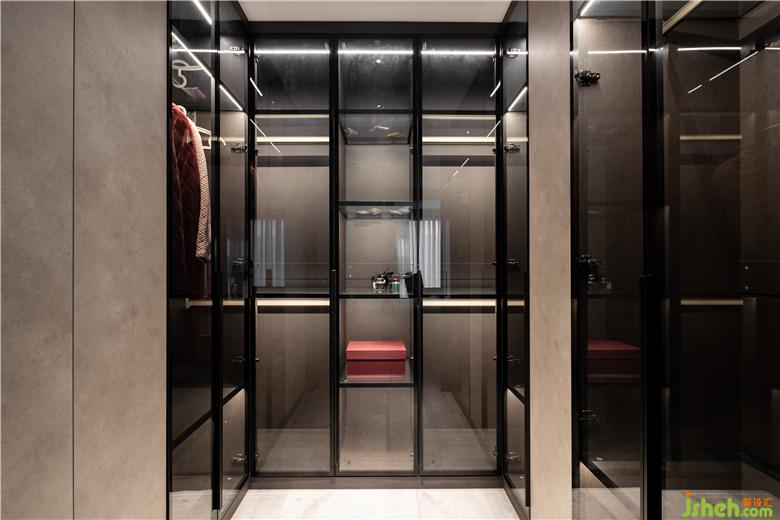 考慮到男業(yè)主愛品酒這個習慣,設(shè)計師從入門開始就加入酒的動線。玄關(guān)處沒有直接使用酒柜,而是加入了一個復合的吧臺,小吧臺配上兩把高椅,酷似酒吧的一隅,作為自由交流的區(qū)域,也許只有一平米的占地,平日里在這里品酒聊天辦公,也是足以讓你提起興致。