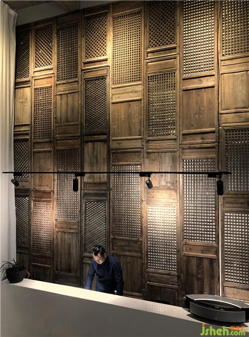 竹竿貼立面裝配形成影簾。由竹竿構(gòu)成豎直線條,有意思的是反過來透過這些豎直線條之間的開口可以看到外部的自然風(fēng)景。