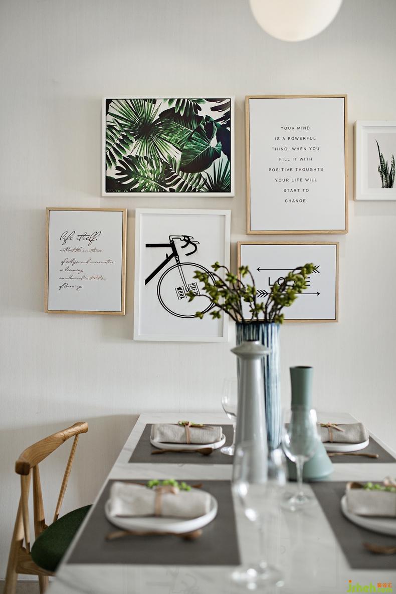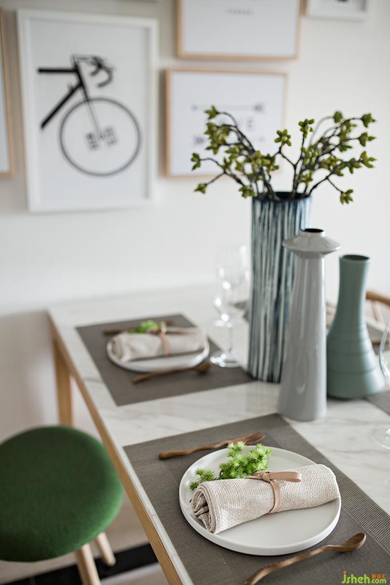 餐廳木質(zhì)餐桌椅子、布藝軟墊、陶瓷餐具自然主題掛畫組合每一個(gè)細(xì)節(jié)的鋪排都呈現(xiàn)出令人感覺(jué)舒適的氣氛,整體空間演繹著優(yōu)雅自然的生活美學(xué)。