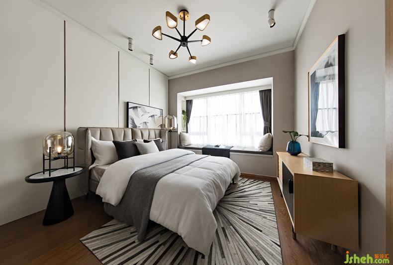 皮質(zhì)軟包床搭配精巧設(shè)計(jì)的黑檀木床頭柜,高挑的落地?zé)糇尶臻g更有層次感,將現(xiàn)代韻律展現(xiàn)得淋漓盡致,深圳設(shè)計(jì)公司整個空間仿佛一幅精美的空間畫次臥灰調(diào)背景墻和素凈的家具床品,是優(yōu)雅風(fēng)情的最好色彩空間在深與淺的碰撞中造就一個詩意的存在。