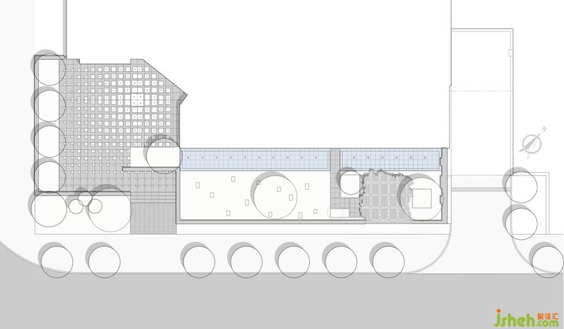 入口廣場由禮序前廳和特色廣場兩個空間構成,后退的景墻設計弱化城市與宗地的界分感,同時空間更顯開闊大氣而又不至于一覽無余,簡單中的微妙轉折,更新著人們的視覺感受。