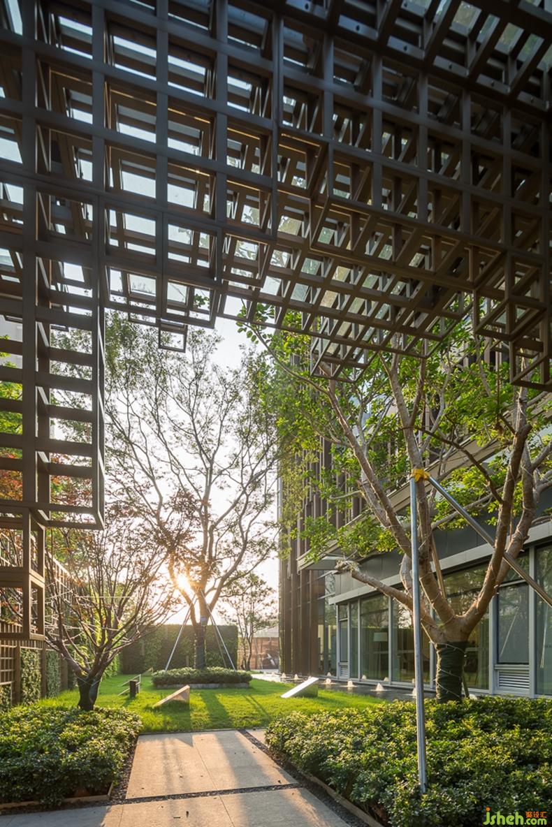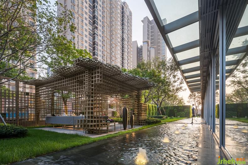 亭的設(shè)計采用借景手法,于此處向外觀景,美景猶如框景掛畫一般,藍天白云,日出日落,展現(xiàn)在眼前,自然和諧,宛如天成。亭與周邊環(huán)境完美融合,卻又出類拔萃,呈現(xiàn)出完美的庭院空間。