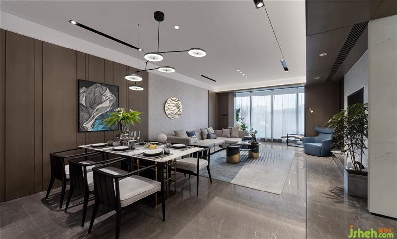 室內建筑化的設計手法,樣板房設計使空間更具有立體感,啡色的大理石地面,深褐色木質配搭,米灰色沙發(fā)及極具奢華質感的古銅鑲嵌,為空間渲染出沉穩(wěn)的基調,煥發(fā)靜謐的氛圍。構成了一幅品質感十足的空間畫面。整個項目,不同的空間需求展現(xiàn)了各具特色的氛圍,契合人類情感的變幻,帶來精神層次的對話。