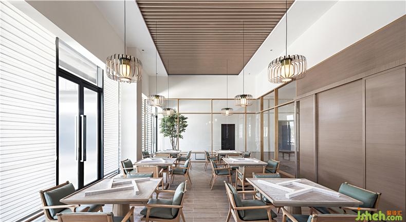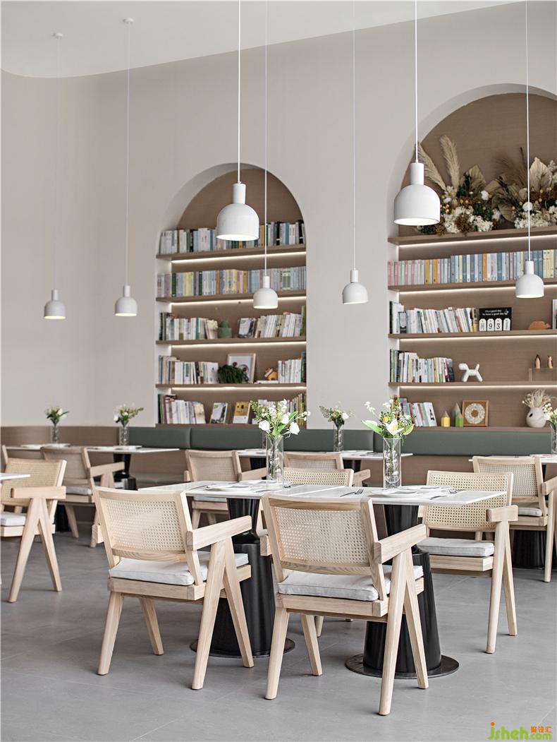 餐廳區(qū)丨如風輕柔,如光自由,圓拱形的書幕墻略帶復(fù)古意蘊,齊整的餐桌餐椅極具生活中的儀式感,半包的卡座被自然環(huán)抱,簡潔的器皿點綴細節(jié),舒緩的氛圍刺激感官,讓身心都得以放松。