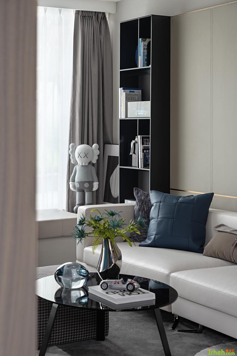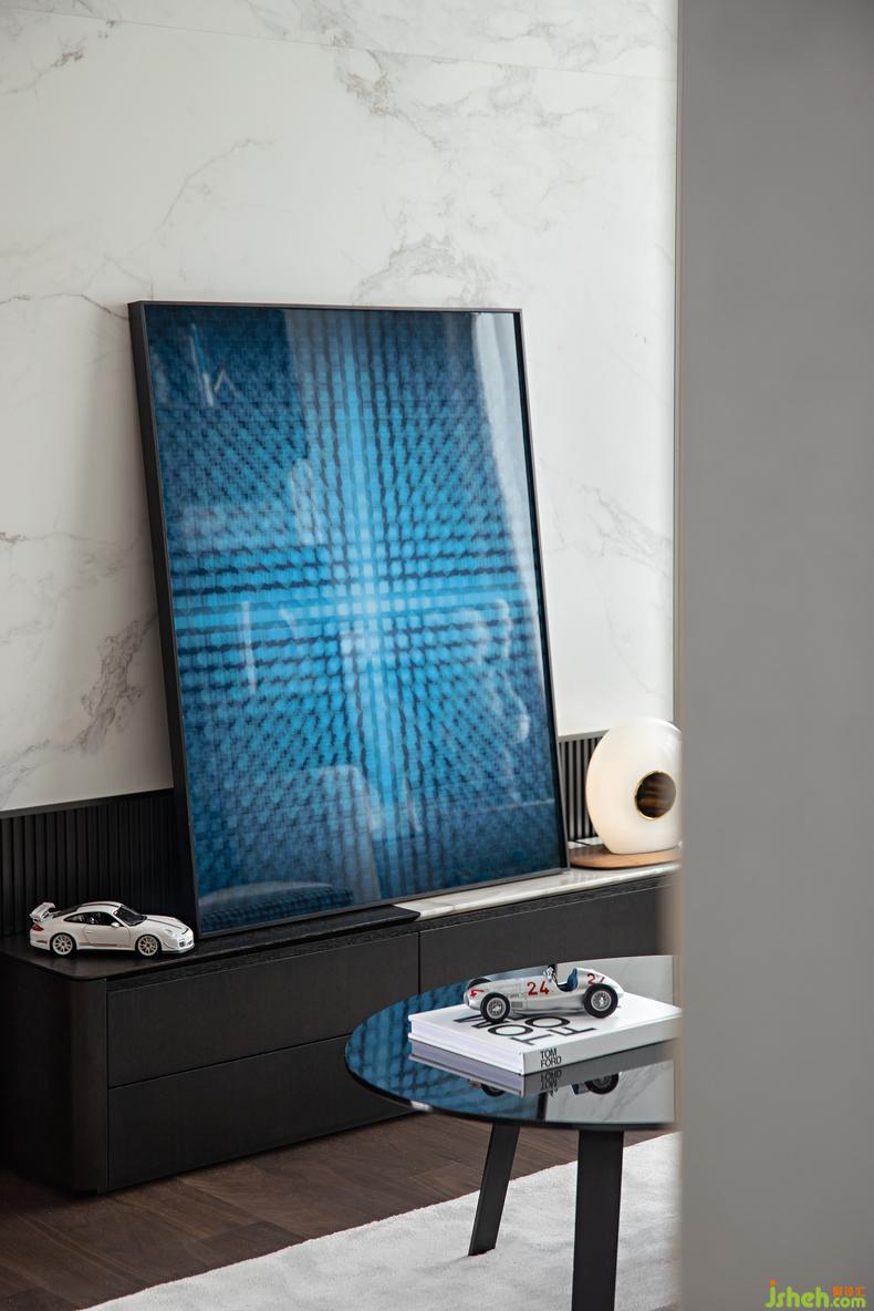 將愛好融入空間的美學(xué)趣味中,對手辦的青睞與對車模的鐘情以科技元素的掛畫搭配襯托,樣板房設(shè)計多元化的收納布景裝下對汽車與科技的好奇,主人對自主空間“大男孩兒式”的表達方式,簡單直接并充滿著紳士與激情的荷爾蒙,對于自己的生活一絲不茍,對于的自己的個性不假于心,看似是空間的敘事,誠則是熱愛的蔓延。
