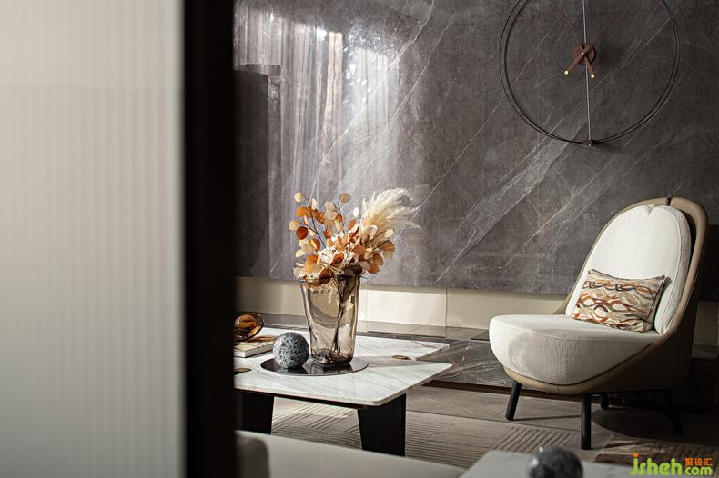 進(jìn)入客廳,首先會(huì)被它柔和的色彩所吸引,不論是皮質(zhì)的沙發(fā)還是地毯的布景,即使是桌幾上的靜物擺件,樣板房設(shè)計(jì)都是足以讓人沉靜心情的色度,在落地的光影中感受久坐而不會(huì)厭倦的閑憩,一本書,一杯咖啡,都是值得細(xì)細(xì)品味的樂(lè)趣。