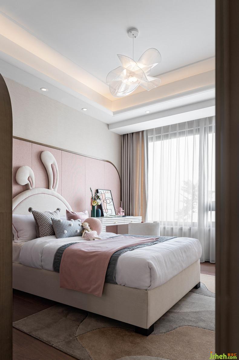兒童房丨嫩粉代表著柔軟的熱情,兔耳朵造型的床頭搭配可愛的玩偶,蔓延著全家人對(duì)小孩子特殊的疼愛,與溫潤宜人的日光共同譜寫成長的序曲。
