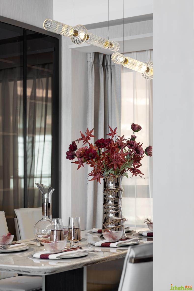 流線垂墜的燈管與桌面明晃的酒杯交相輝映室內設計師