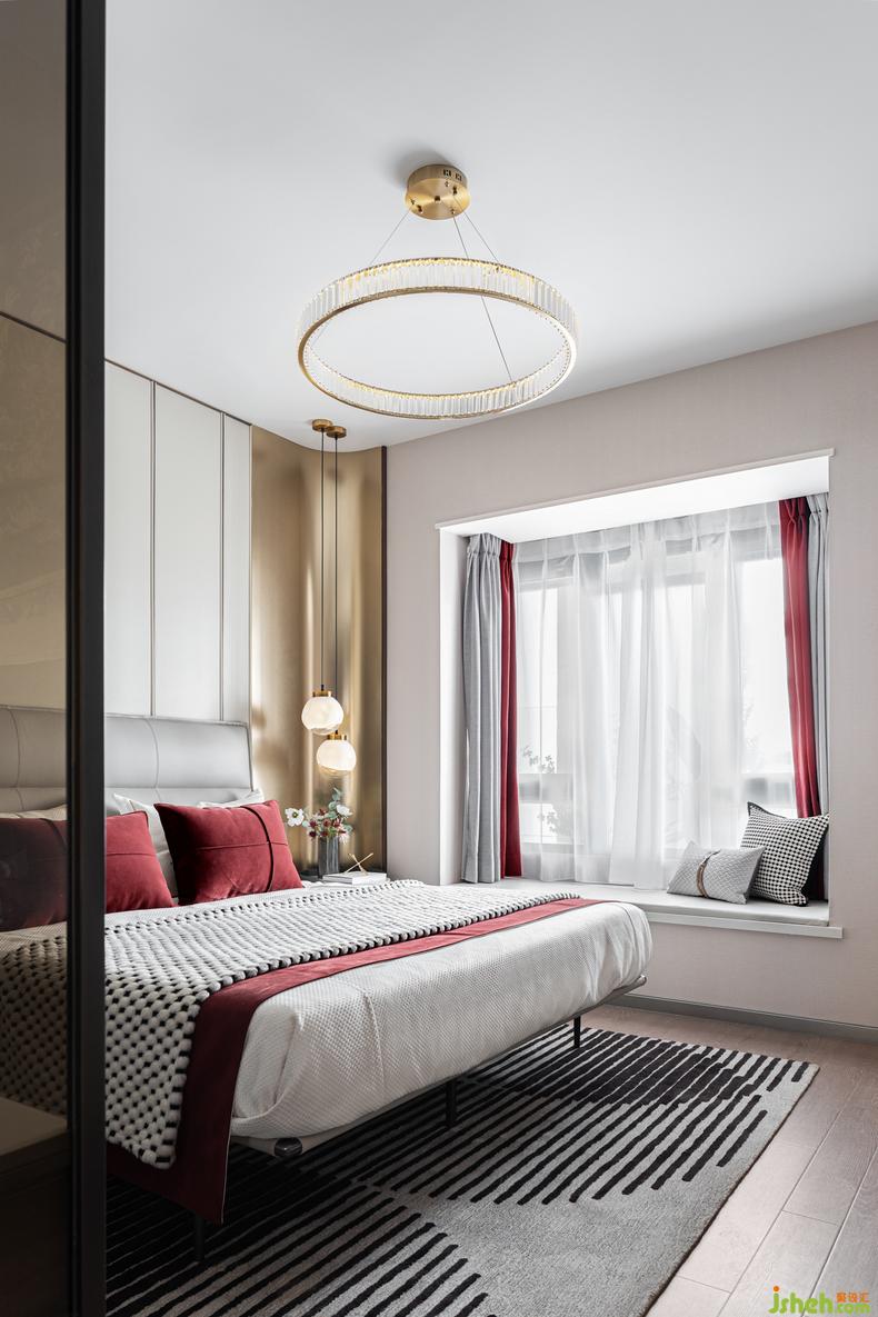 寬度讓人更能注視身旁的藝術,讓生活的過程有了一種次序感,室內設計師客廳將賦有禮儀感的家宅印象與儲物功能融合,多向的家居布局在布藝的沙發(fā)、暖白的墻體、全景的飄窗演變?yōu)槔硐肷畹哪芰?,而在輔助色調的選擇上,卡地亞紅與鸚鵡綠的配比,讓空間立面的形式語言多了輕奢的定義,讓私域領地堪比一場優(yōu)雅的旅行。