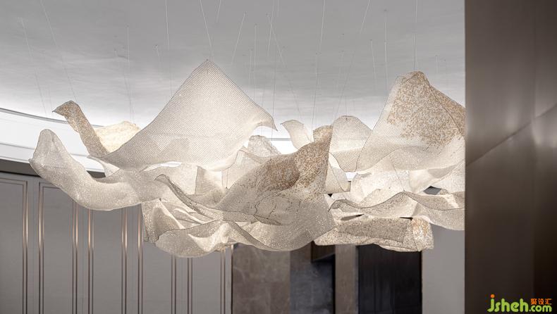 走入沙盤區(qū),俯瞰是玉溪這座城市的地標(biāo),室內(nèi)設(shè)計(jì)師昂首即是白色沙帷呈現(xiàn)出的朦朧與透明的云朵美學(xué)記憶,在空間的凝視中,感受唯美的造境。