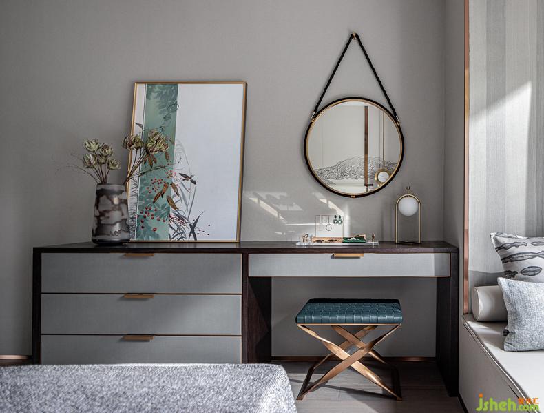 節(jié)奏和韻律都可以激發(fā)人們對美的聯(lián)想,梳妝區(qū)域的表現(xiàn)一定是柔和的、朦朧的,創(chuàng)意的圓鏡,創(chuàng)意的擺件,鎏金色彩的使用讓空間多了感性的情愫,給美多一種色調(diào),讓生活多一些優(yōu)雅。