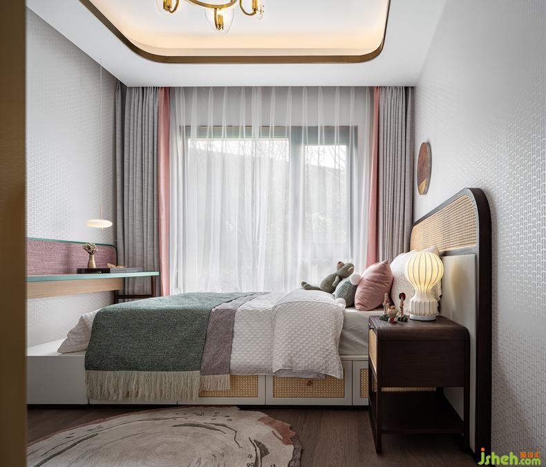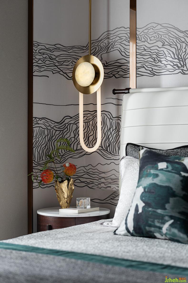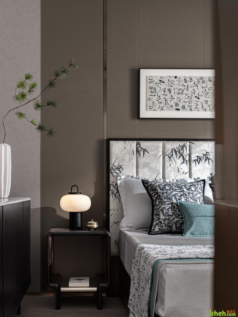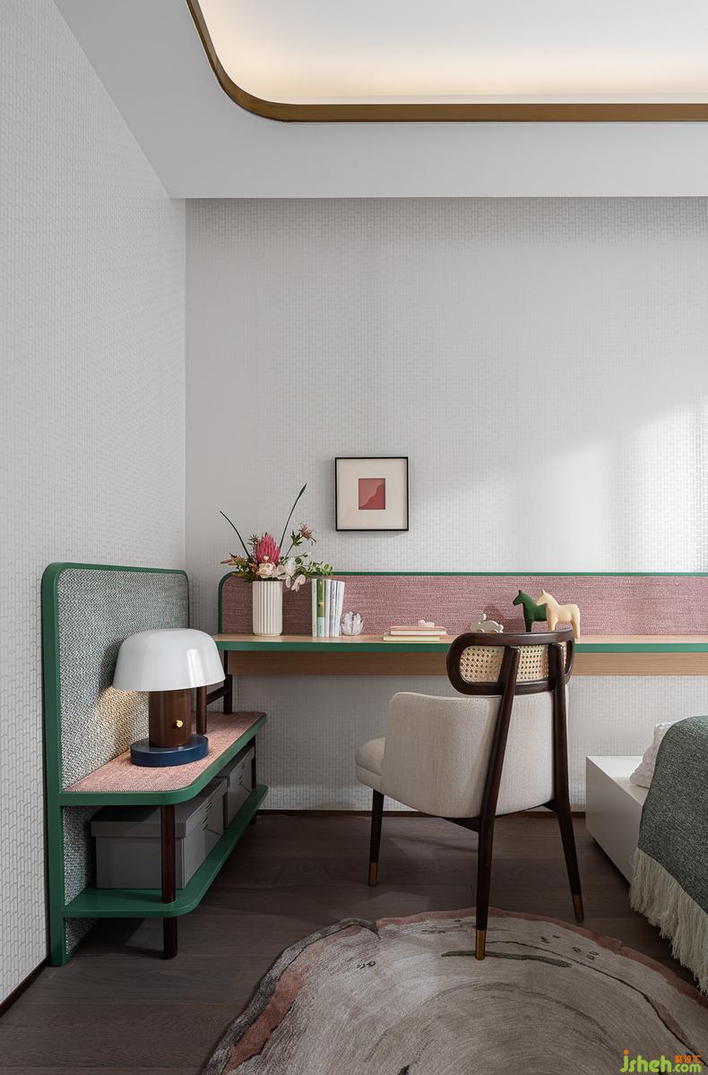 客臥選擇赭色作為一種敘事語言,讓整體視覺更加精致活潑,而松竹在靜物中的應(yīng)用,則讓這份活潑又多了些輕盈與淡雅,置身其中,恍若夢與詩意的具象。室內(nèi)設(shè)計師