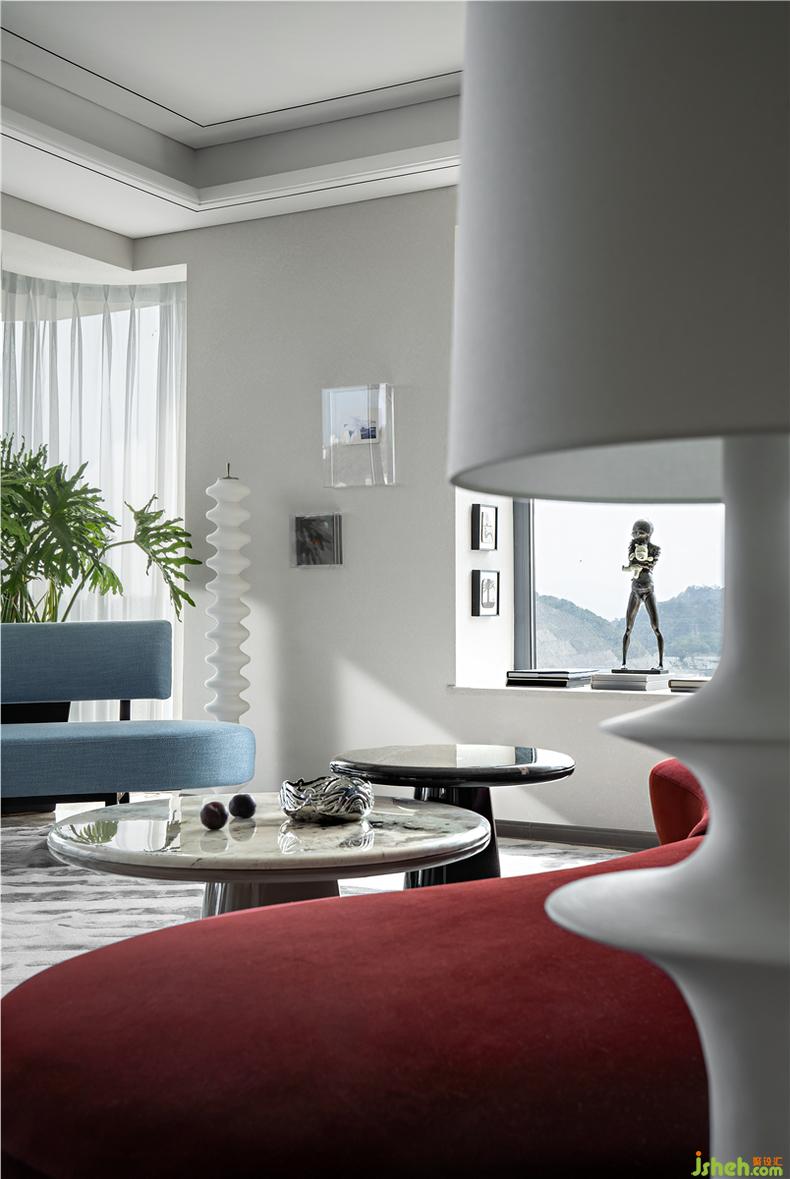 熱烈的紅,淺海的藍(lán),桌幾的雅,配飾的藝,在雙敞的空間布局疊加了創(chuàng)意的寫(xiě)意,搭配著光影的暖調(diào),線條的唯美,地毯的肌紋,綠植的舒展,如同在海灣度假一般,無(wú)不譜寫(xiě)著海景大宅的閑適與時(shí)光的漫游。