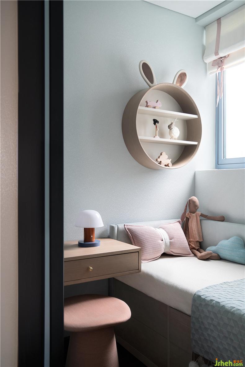 房間內(nèi)以素雅的色調(diào)鋪陳,搭配著淺海藍(lán)的軟裝營造,簡單的細(xì)節(jié)中都彰顯著屬于小主人的居享時光,充滿無盡的樂趣。