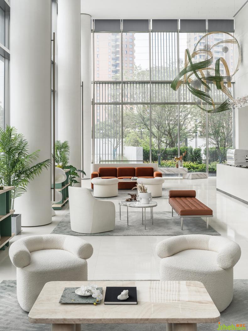 在豐沛的時間與日光下,將生態(tài)色感融入設(shè)計中,給予人最放松的空間感受,售樓處設(shè)計為思想與動態(tài)留下不著痕跡的溫柔。