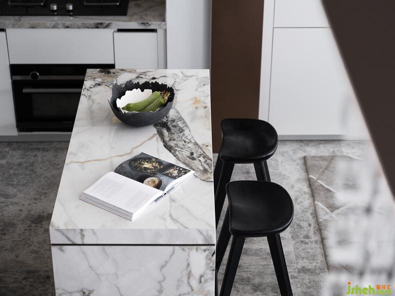 方正格局下的開放式廚房,給空間營造出一種溫馨的氛圍,料理臺的石材搭配讓主人偏愛的自然光線,讓白的主色不再單調(diào),讓料理的樂趣靈感迸發(fā)。
