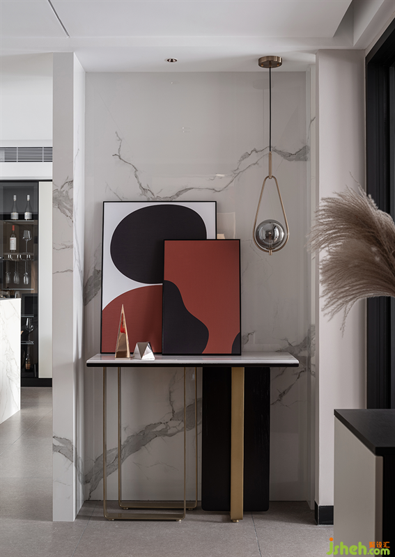 入戶玄關(guān),線條、色彩、形狀三者融合直達(dá)眼底,表現(xiàn)力的直接,刻畫無拘無束。