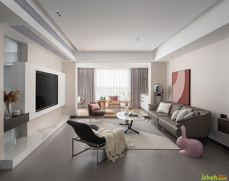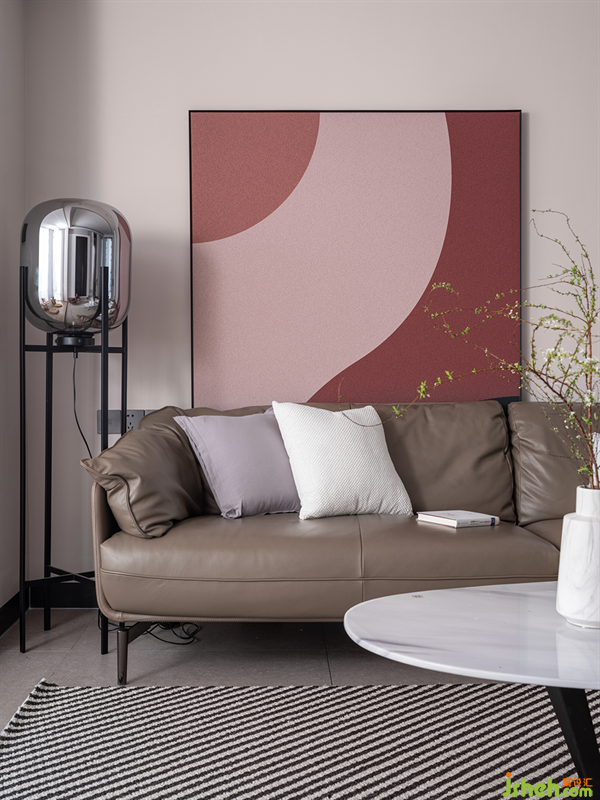 一幅粉色系壁畫猶如點睛之筆,更添一抹藝術(shù)氣息。極簡線型燈,高級且有質(zhì)。