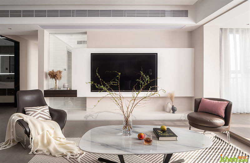 加長空調(diào)風(fēng)口后,加強(qiáng)了客餐廳的連接性,也讓整個空間則更具透視感。