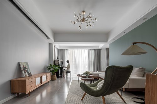 隨性而不隨意擺放的家具散落客廳各處,低飽和度的色彩放松身心,洗去疲憊,將溫暖進(jìn)行到底。