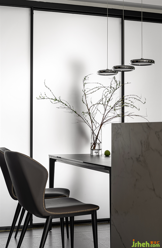 石板餐桌、咖色座椅、極具藝術(shù)感的吊燈融匯在整個(gè)餐廳設(shè)計(jì)中,增添了更具時(shí)尚感和個(gè)性感的格調(diào),餐廳也以它獨(dú)有的空間語言延伸至每一頓餐食之中。