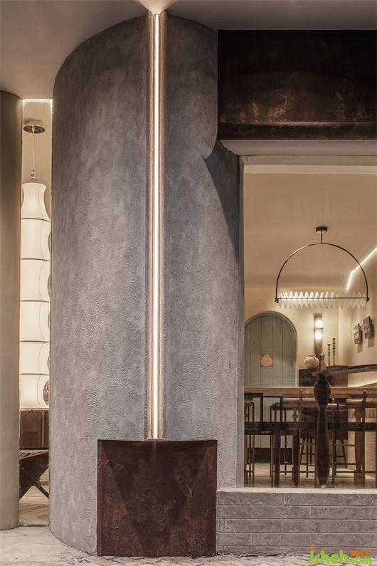 項(xiàng)目巧妙整合了內(nèi)外空間的關(guān)系,通過元素的突出與變化,形成遞進(jìn)式的觀感效果。外觀注入“書籍”的概念,餐廳設(shè)計(jì)門頭造型如同翻動(dòng)的書頁、鋪展的紙張,外立面運(yùn)用微水泥打造出書脊的造型,使項(xiàng)目整體宛然一本引人入勝的書卷,吸引消費(fèi)者一探究竟。