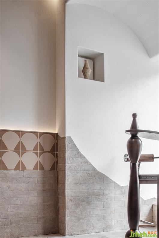 伴隨著天花曲線的舒展,空間打破了原有的框線桎梏,用不規(guī)則的磚面和墻體對(duì)空間進(jìn)行了切割與重塑,極大強(qiáng)調(diào)了區(qū)域的獨(dú)立性和立體性。