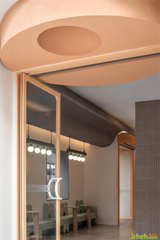 The three-dimensional geometry at the entrance is refreshing. The collision of square and circle breaks the conventional pattern of horizontal, flat and vertical. The plain base is decorated with lively and friendlycolor of CoCo orange, creating a simple and fashionable first visual experience while interpreting a more youthful brand style.