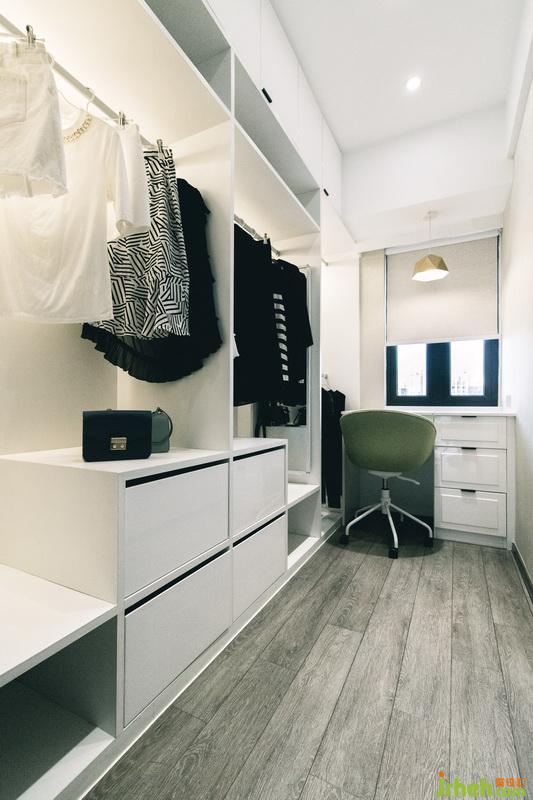 獨(dú)立的衣帽間入口做了推拉門,把衣柜完全打開,更方便挑選衣服。梳妝臺也放置在此,這里就是妝扮的天地,不論是喜歡奢華或是簡約,都可隨心搭配,也能和諧共處。