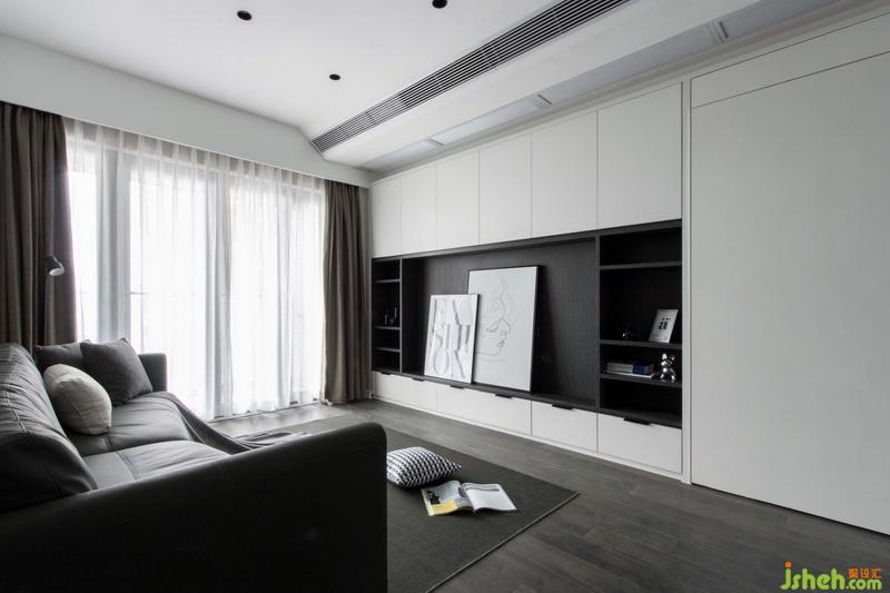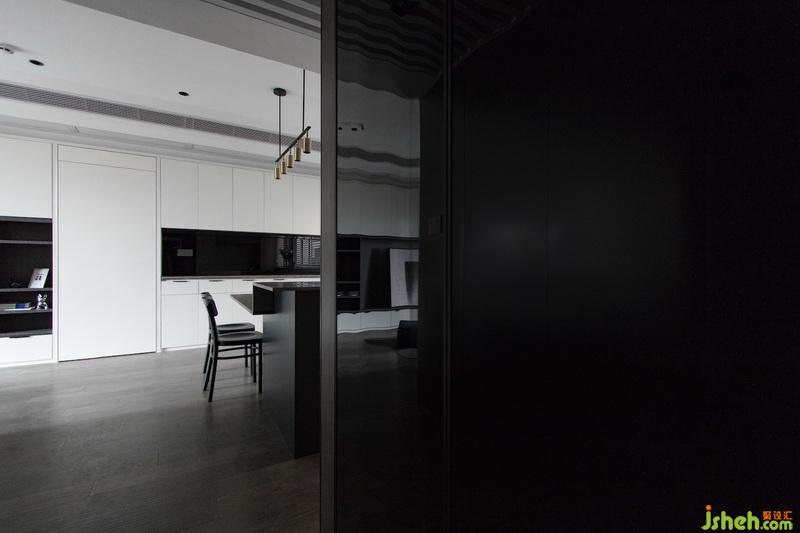 鞋柜搭配半透的黑玻璃,玄關兩邊干凈統(tǒng)一的色調處理更具空間感,加上材質的反射效果讓視覺有了延伸感。從踏進家門的那一刻開始,已經(jīng)明顯感覺到空間的寬敞。