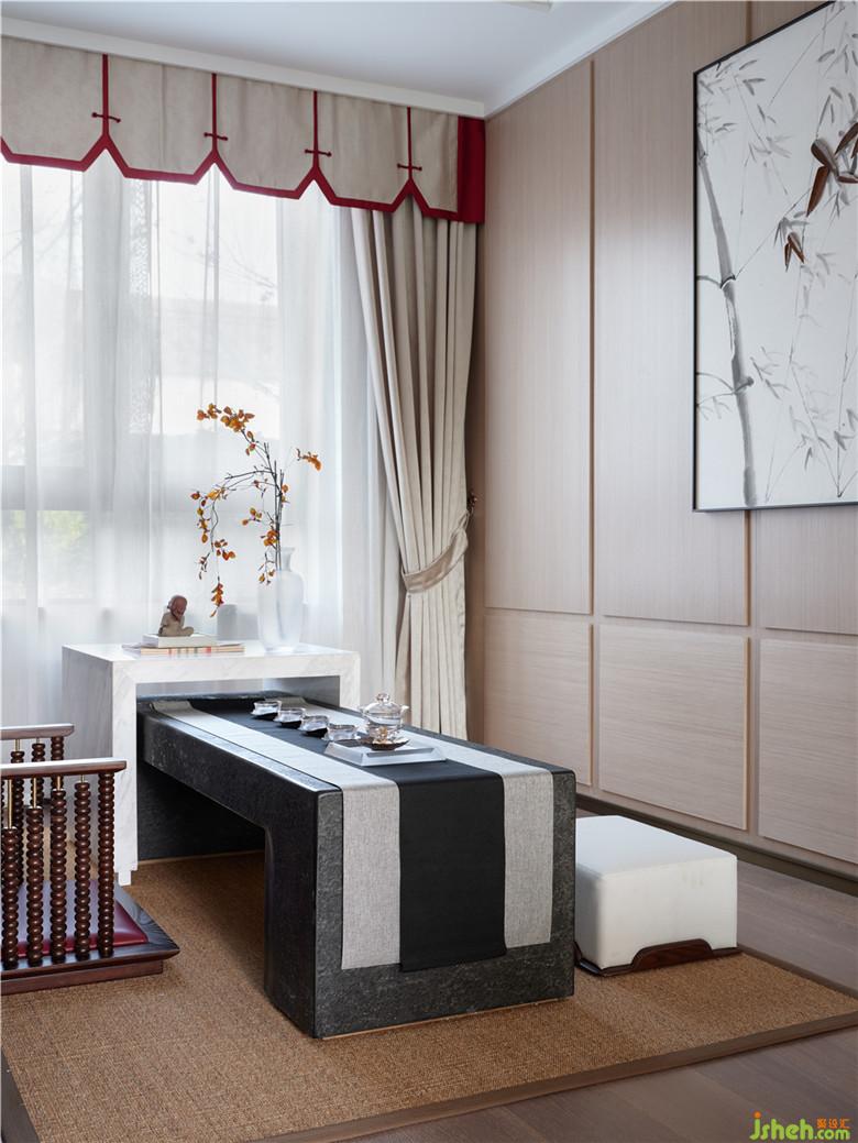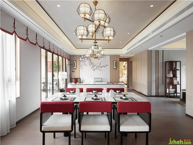 室內設計師試圖對話古今,在中式的精神內涵中,注入些許現代氣息的材質,找尋一種平衡的美:現代吊燈,古典茶室,童趣擺件,素雅蒲扇…新舊更迭,以和諧的方式穿插在空間里,融合自然與光線,讓現代生活中有著傳統的文化內涵,追根溯源,我們需要的正是這樣的一室悠然,如初心般姣如云間月。