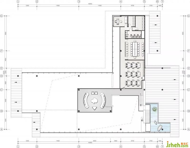 一樓接待區(qū)和二樓的VIP區(qū)之間,靜默存在又彼此串聯(lián)。吊腳樓強(qiáng)化了一樓與二樓架構(gòu)空間的起、承、轉(zhuǎn)、合,成就一種“你中有我,我中有你”的布局性手法,這不禁令人聯(lián)想到山城的大街小巷,跌宕錯(cuò)落中又不缺乏奇幻的瑰想。